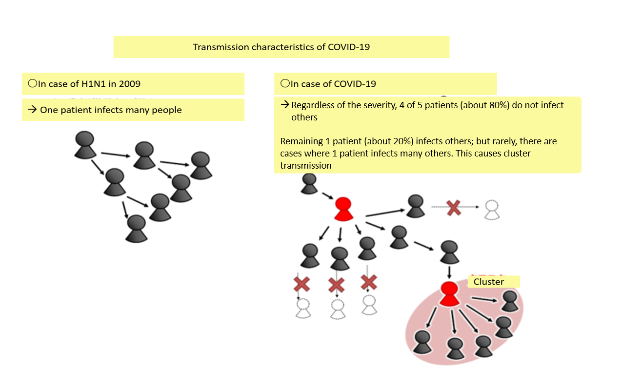 5月29日に公表された専門家会議の「新型コロナウイルス感染症対策の状況分析・提言」に「補論」として収録された「我が国のクラスター対策について」は、押谷教授の監修と推察されるが、非常によくできている。https://www.mhlw.go.jp/content/10900000/000635389.pdf#search='%E6%96%B0%E5%9E%8B%E3%82%B3%E3%83%AD%E3%83%8A%E3%82%A6%E3%82%A4%E3%83%AB%E3%82%B9%E6%84%9F%E6%9F%93%E7%97%87%E5%AF%BE%E7%AD%96%E3%81%AE%E7%8A%B6%E6%B3%81%E5%88%86%E6%9E%90%E3%83%BB%E6%8F%90%E8%A8%80%E3%80%8D%EF%BC%88%E4%BB%A4%E5%92%8C+2+%E5%B9%B4+5+%E6%9C%88+29+%E6%97%A5%EF%BC%89'
